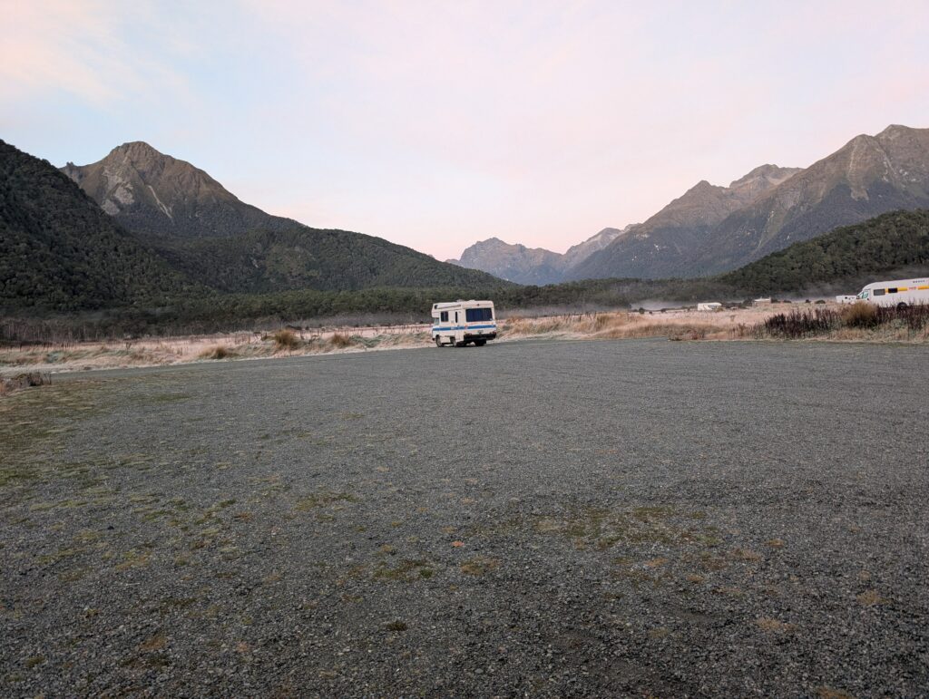 Cela aurait été dommage de ne pas aller visiter la cousine de l’Australie à seulement 3 heures d’avion de Melbourne. Même formule ici, on part sur 5 semaines en van aménagé. Il s’agit du même modèle que le précédent mais avec quelques kilomètres en plus au compteur (seulement 560 000 😂). Il est tout de même bien équipé pour le froid (couvertures, couettes, bouillottes) avec l’hiver qui commence ici. 🥶