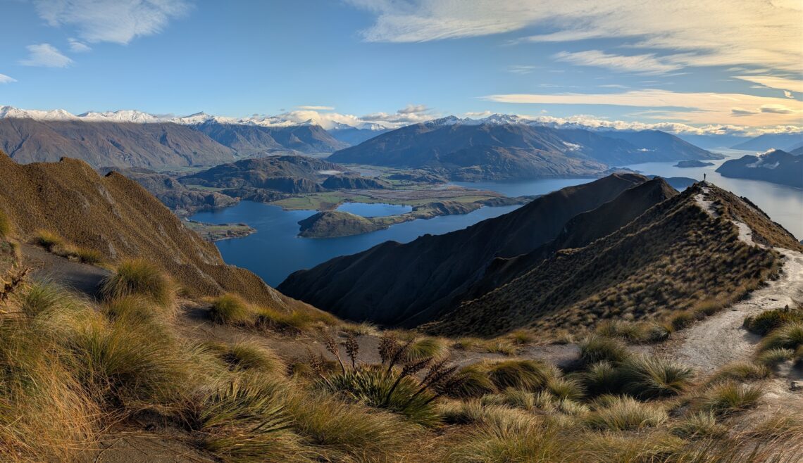 L’arrivée en avion à Queenstown en passant au dessus des fjords est déjà exceptionnelle. Tels deux petits hobbits (ou plutôt un grand et un petit), on part explorer la Terre du Milieu. Car oui, le Seigneur des Anneaux a été tourné ici et les paysages sont vraiment très similaires. On a l’impression qu’une armée d’orcs peut surgir à tout moment dans nos randonnées. 🧌